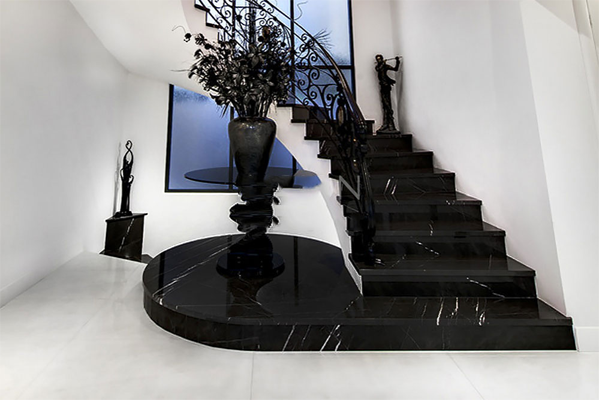 Bạn có thể tạo điểm nhấn cho phần tay vịn cầu thang và toàn bộ ngôi nhà, bạn nên chọn loại đá đen kim sa kết hợp với tay vịn gỗ. Sự kết hợp tinh tế này sẽ khiến cho cầu thang nhà bạn có sự hòa quyện giữa hai chất liệu, tạo cảm giác sang trọng và nâng tầm đẳng cấp cho ngôi nhà.